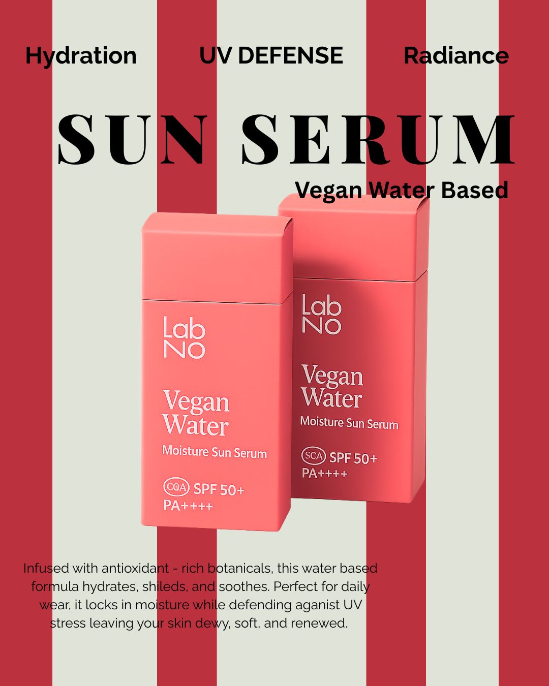Each product was treated as its own moment. I worked with soft gradients, botanical elements, and clear label layouts to evoke calm and simplicity. the packaging design highlited the key features- ''Lab No,'' for a clean, clinical edge; ''Vegan Water'' and ''Moisture Sun Serum'' for teh modern, ingrident - aware customer. the typography was carefully paired to bring softeness and modernity. Everything was deliberate. the floral elements weren't just decoration but they reflected the natural roots of the products. The spacing, teh tone, the color and experience that felt grounded, beautiful, and pure.